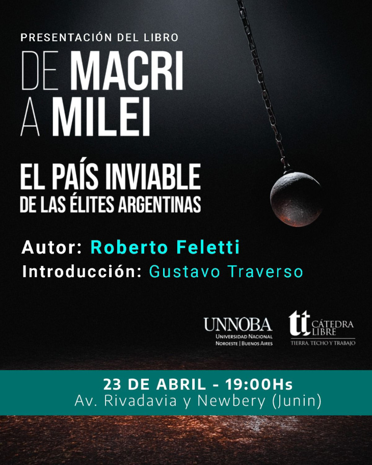 El próximo Jueves 23, a las 19.00, Roberto Feletti estará en Junín para presentar su último libro y realizar una conferencia sobre la actualidad económica del país.