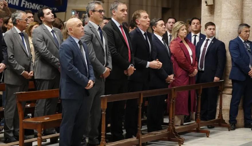 Dirigente de primera línea del oficialismo y la oposición participaron en Luján de una misa en homenaje al Papa Francisco en el primer aniversario de su muerte, donde escucharon un llamado de la Iglesia a terminar con “los gestos violentos” y en “lenguaje agresivo” en la política.