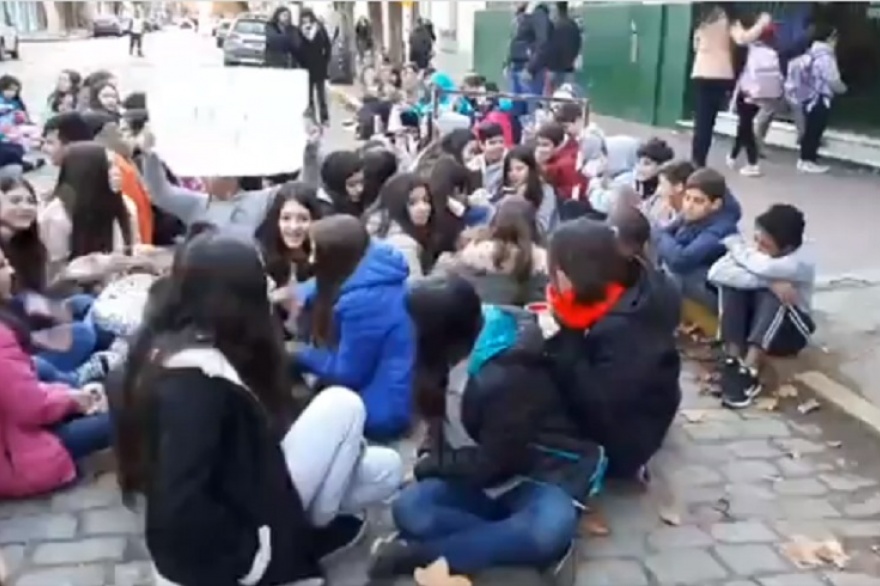 La falta de salones abruma a la Escuela Secundaria N° 22, que comparte el edificio de calle Alem y Sarmiento con la Escuela Primaria N° 2, y por eso hoy los alumnos realizaron una sentada de protesta en las puertas del establecimiento.